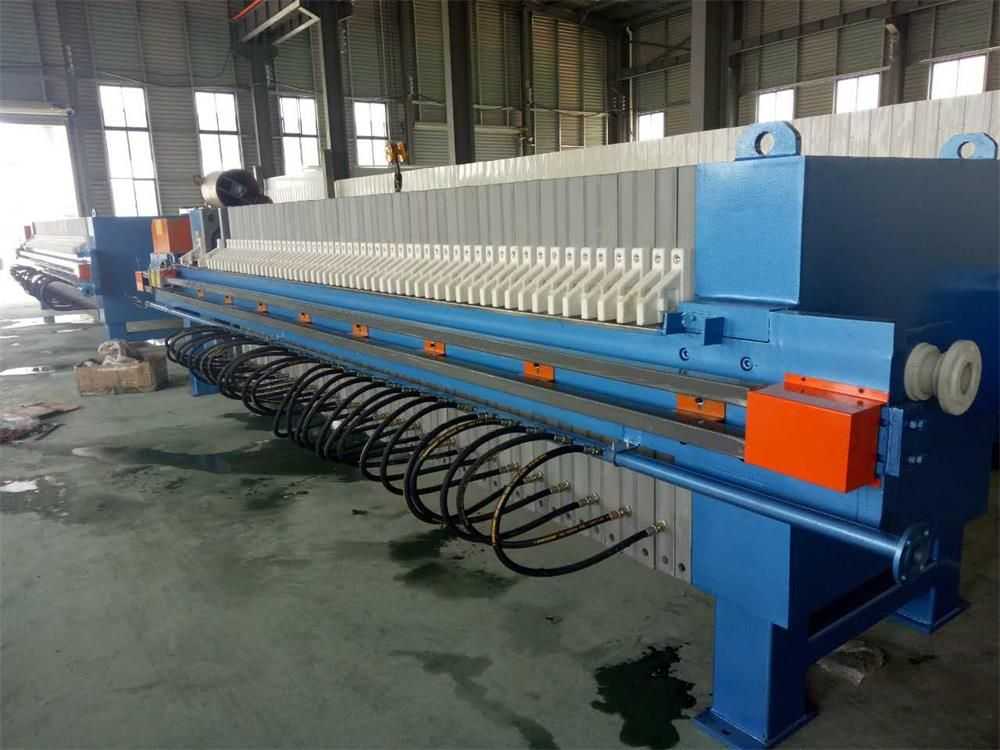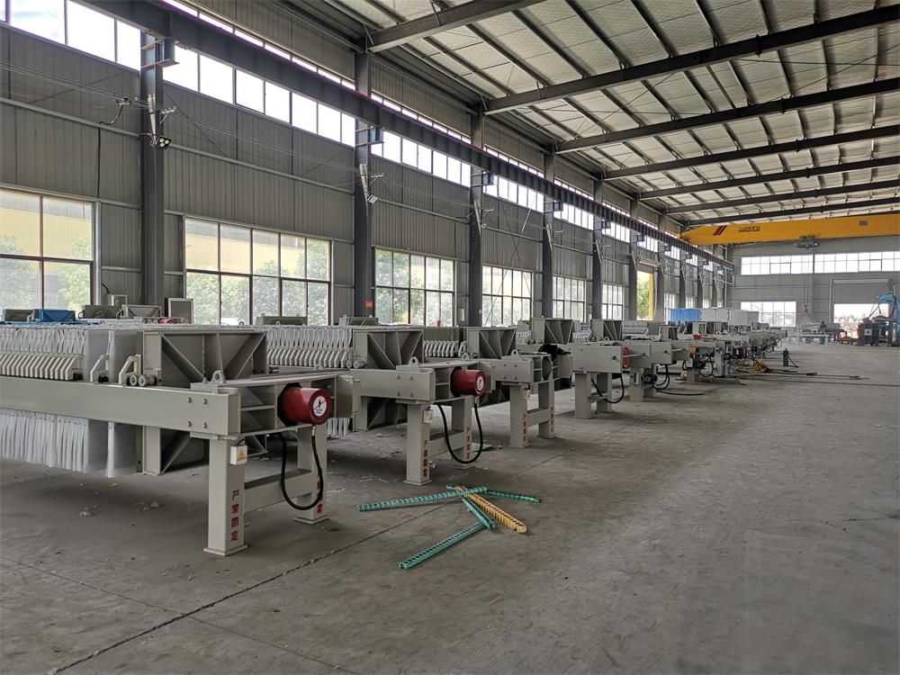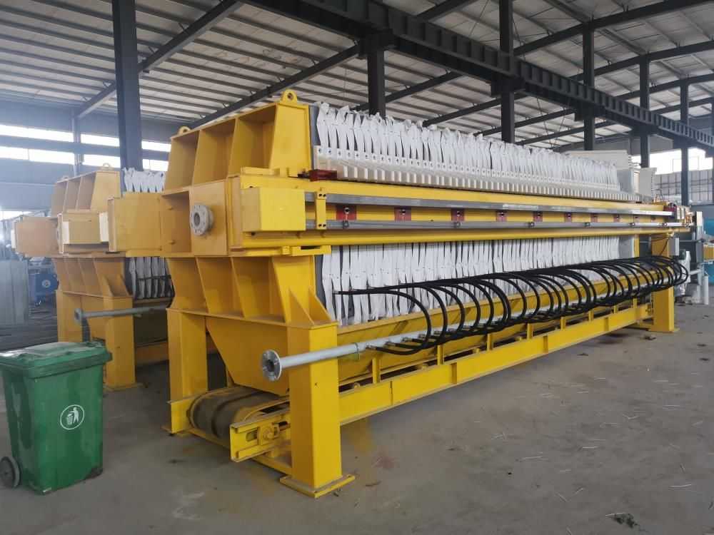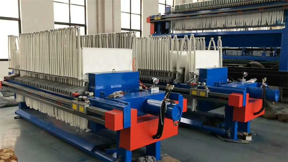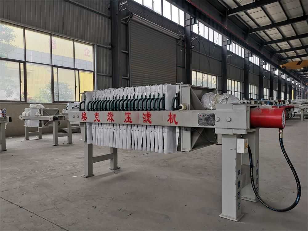 隔膜壓濾機(jī)和常規(guī)箱式壓濾機(jī)的主要區(qū)別在于,在濾板的兩側(cè)都增加了兩個(gè)彈性膜(復(fù)合橡膠膜是一個(gè)整體式膜。在操作期間,當(dāng)進(jìn)料完成時(shí),將高壓流體介質(zhì)注入膜中,并使整個(gè)膜膨脹以過(guò)濾濾餅,以進(jìn)一步使濾餅脫水,這是壓力過(guò)濾。在隔膜壓濾機(jī)運(yùn)行期間,液壓系統(tǒng)使用液壓油作為壓力載體來(lái)傳遞內(nèi)部壓力。